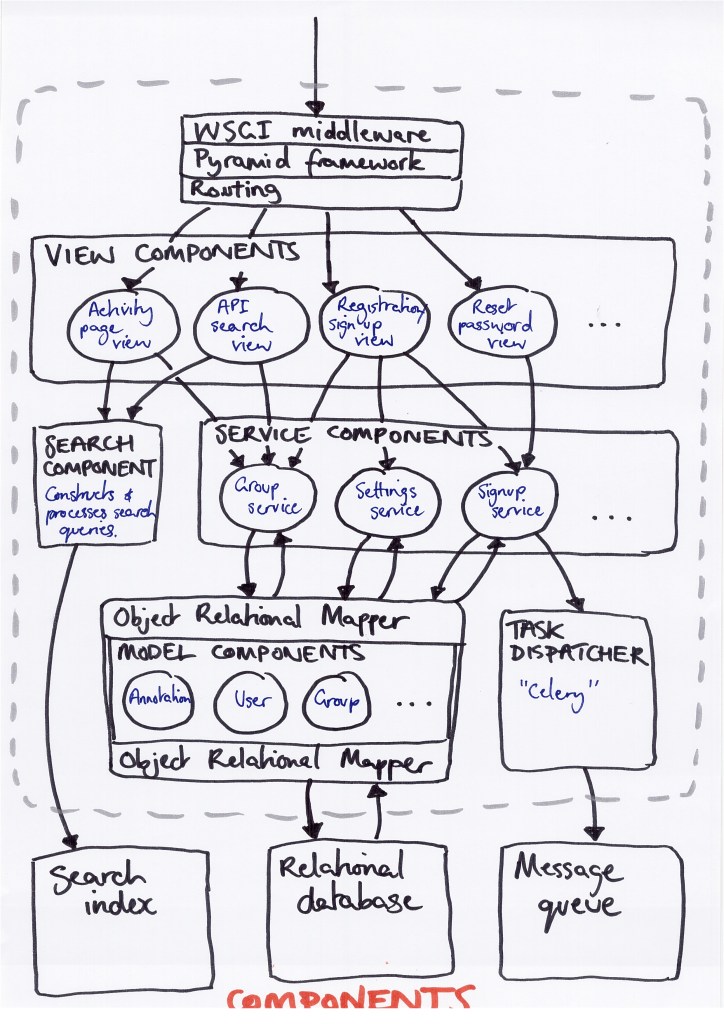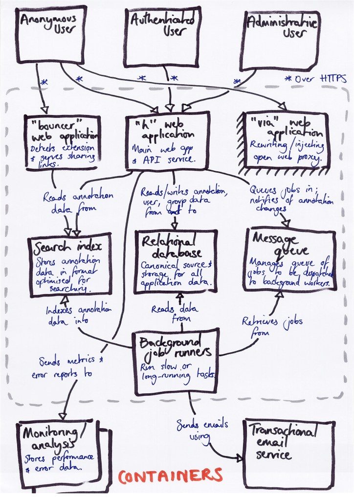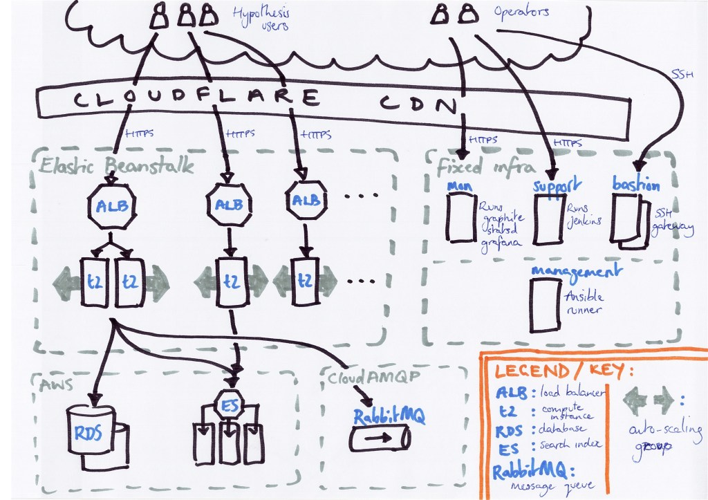 A technology organization asked me to transform rough sketches from their engineers into formal architectural diagrams in Google Drawings that they could then update with future changes.