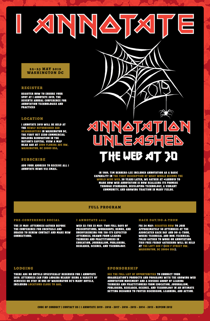 I created a logo used on the website, t-shirts, and other related collateral for this annual conference. Inspired by the conference’s 2019 theme, “annotation unleashed,” the design pays homage to classic heavy metal band art.